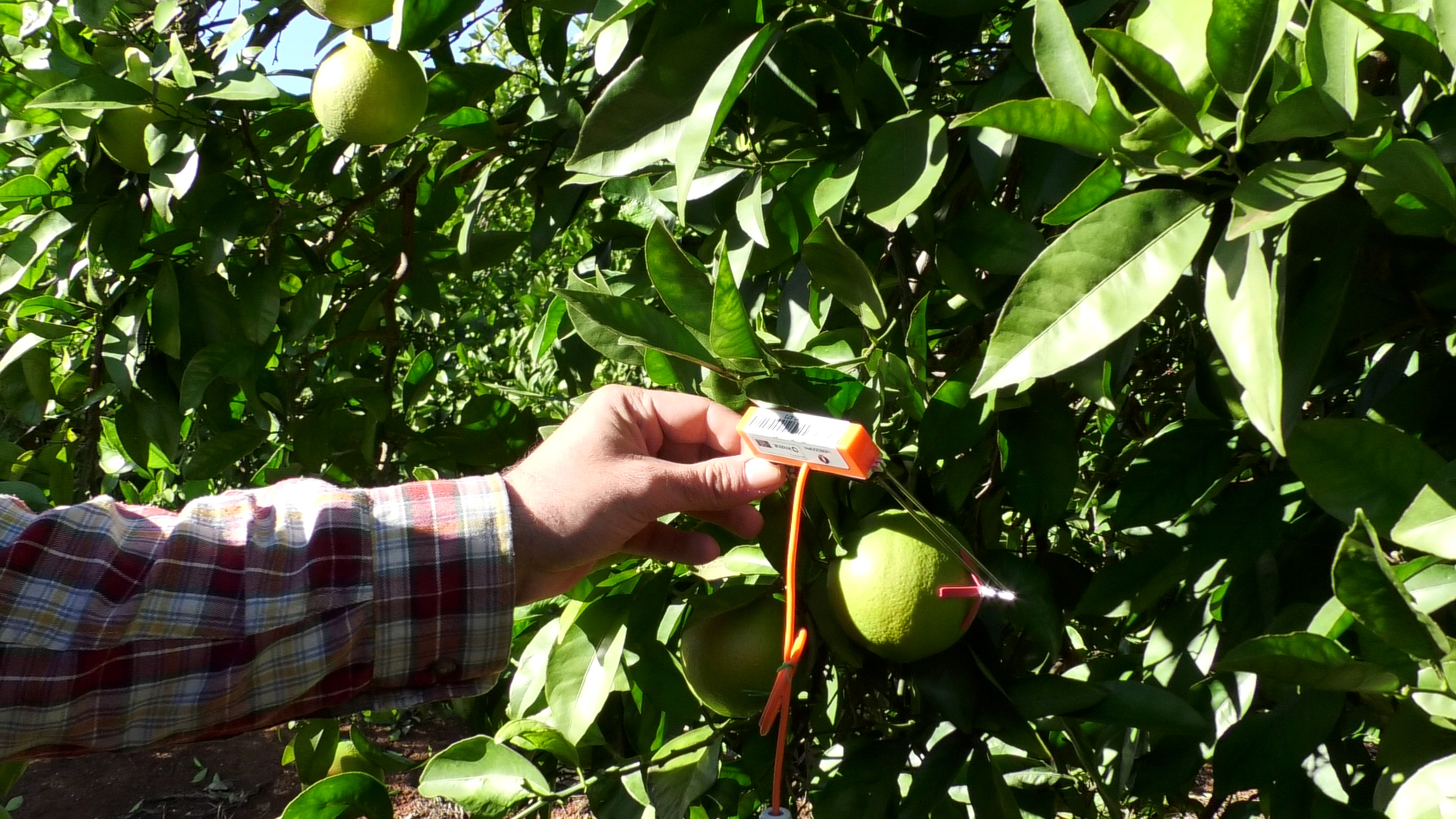 Demonstração dos equipamentos de monitorização do desenvolvimento do pomar observado a 21 de junho de 2023.