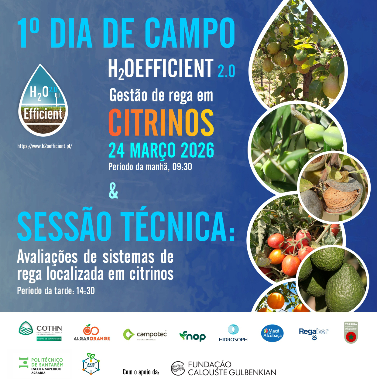 O projeto H2OEfficient está de volta! O COTHN-CC e a Escola Superior Agrária de Santarém, com o renovado apoio da Fundação Calouste Gulbenkian, voltam a unir esforços para trazer práticas de eficiência na utilização de água na agricultura, desta vez em mais culturas como o Abacate, os Citrinos e o Amendoal, para além do Tomate de Indústria e das Pomóideas. Continuamos também os ensaios com a Tecnologia Aqua4D em Tomate de Indústria e este ano estendemos o ensaio desta tecnologia para a Cultura da Pera Rocha.